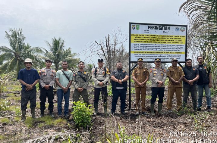 Polres Meranti Pasang Plang Peringatan Karhutla di Desa Tanjung Medang Kecamatan Rangsang
