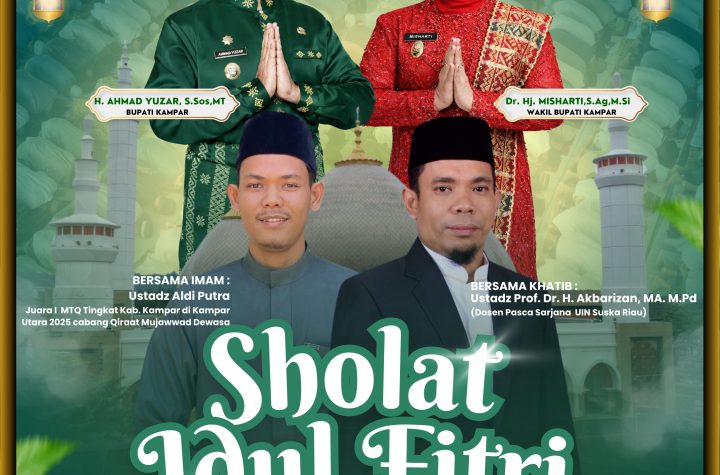 Hadirkan Ustadz Prof. Dr. H. Akbarizan, MA, M.Pd, Pemkab Kampar Gelar Shalat Idul Fitri 1447 H di Masjid Al Ihsan Islamic Center Bangkinang.